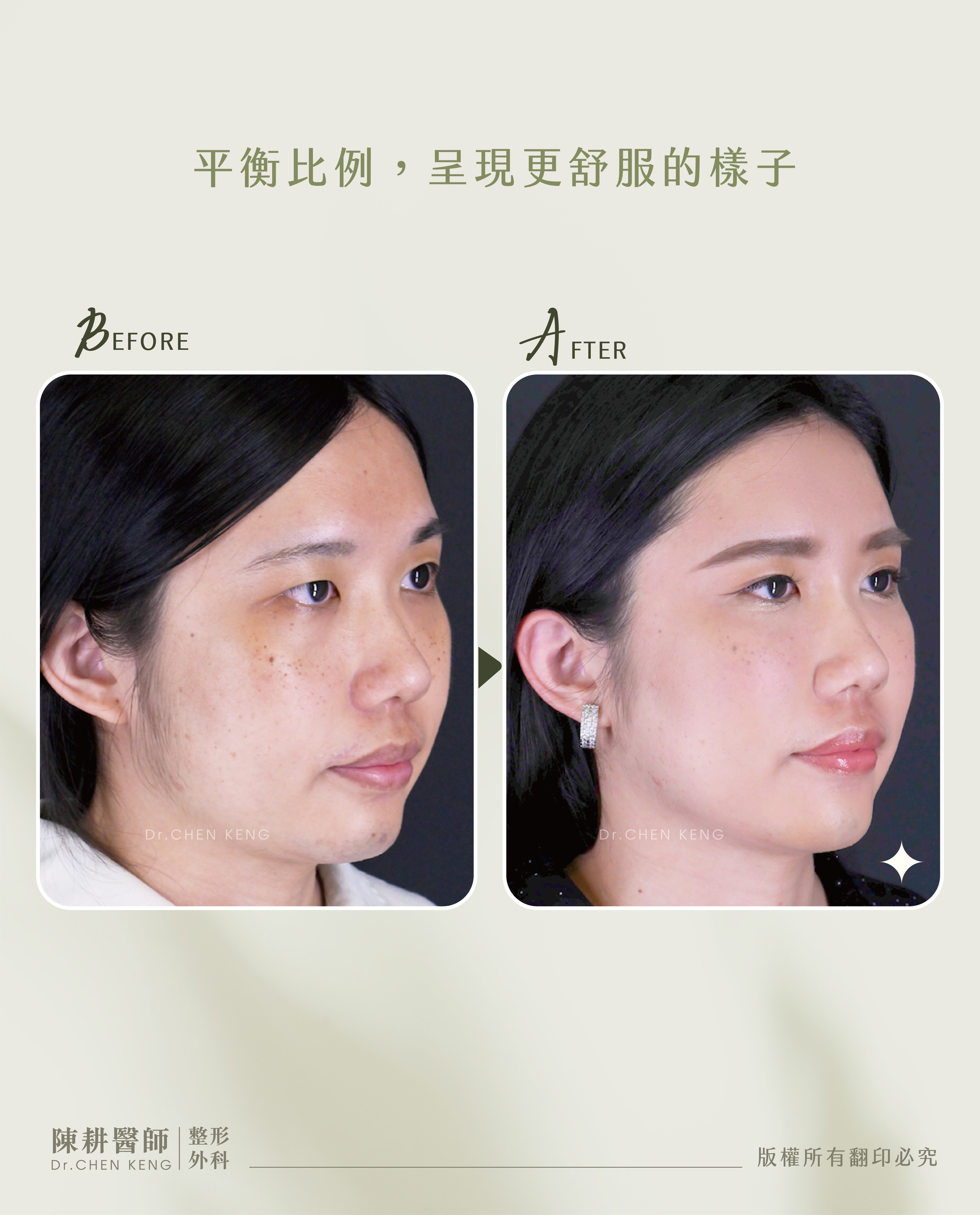 這位個案難度是高的,因為她本身條件就不錯,五官立體,臉型也可愛,無明顯要改善的瑕疵,調整幅度不大,但施打過程必須非常精細,只要稍微過度更動,都會有明顯的醫美感。