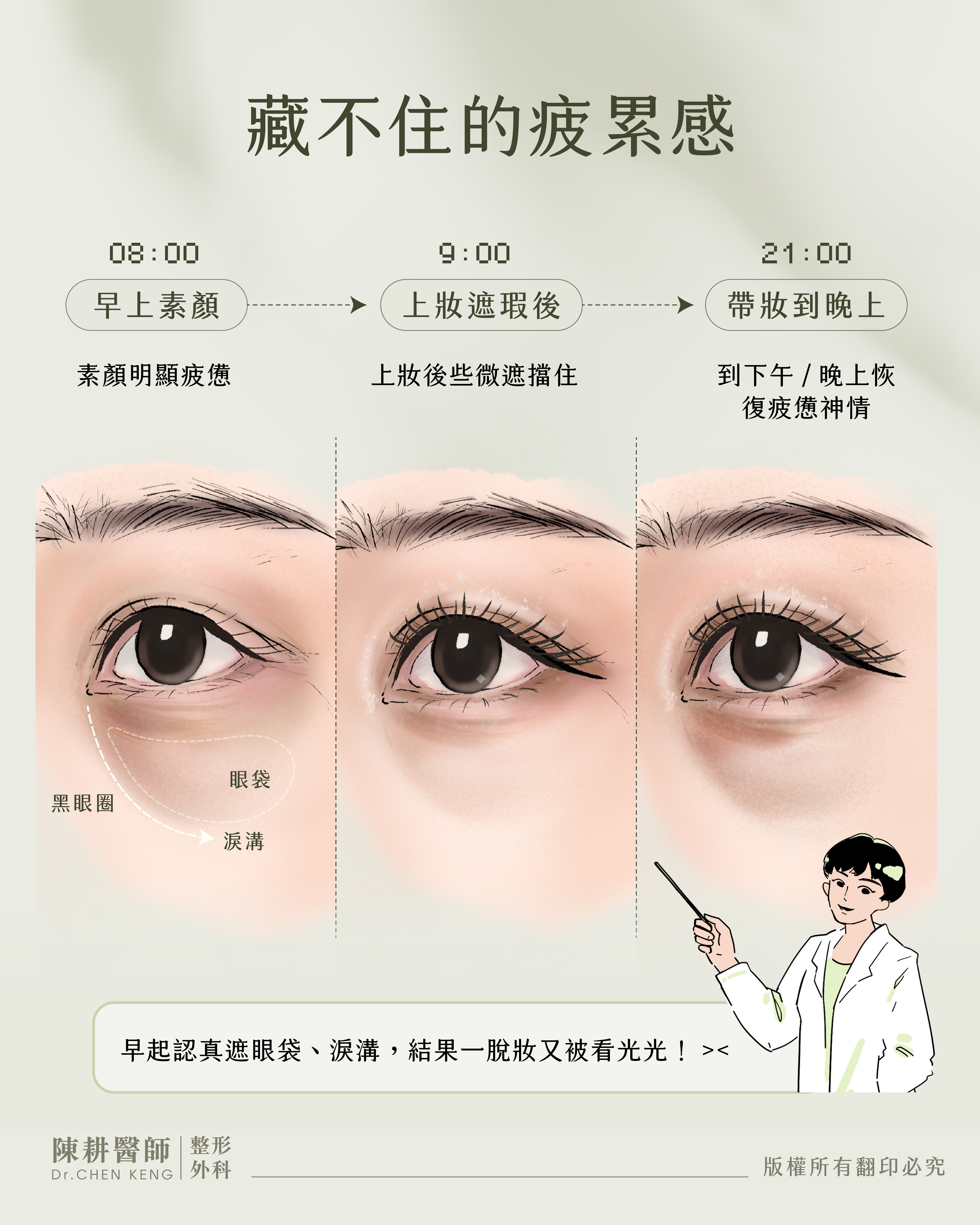 「醫師,為什麼我怎麼遮都遮不掉眼周的疲憊?」病患懊腦地問。