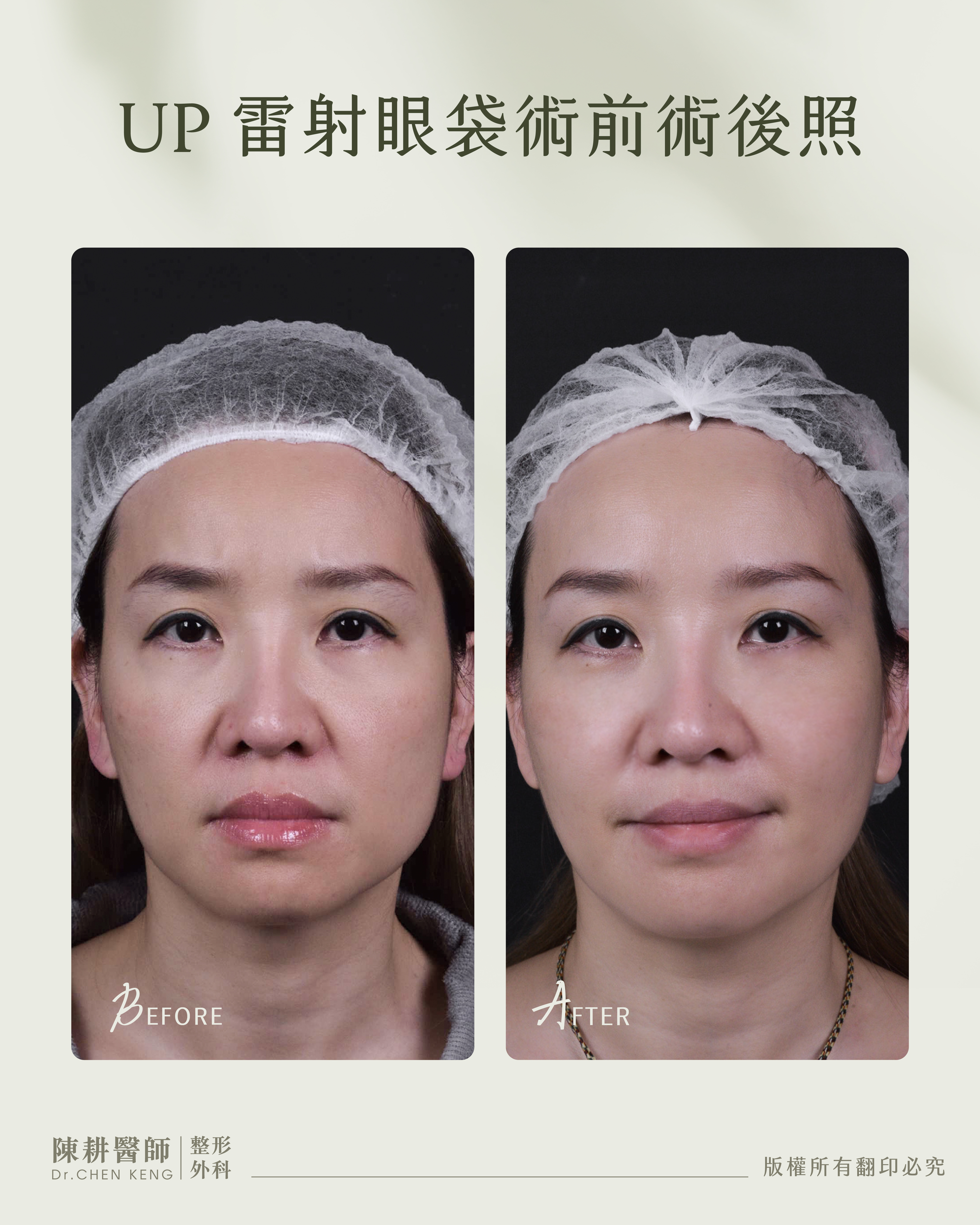當然,UP雷射可以處理眼周肌膚尚未過於鬆弛的眼袋,若已經非常鬆弛,則需要搭配修皮手術。