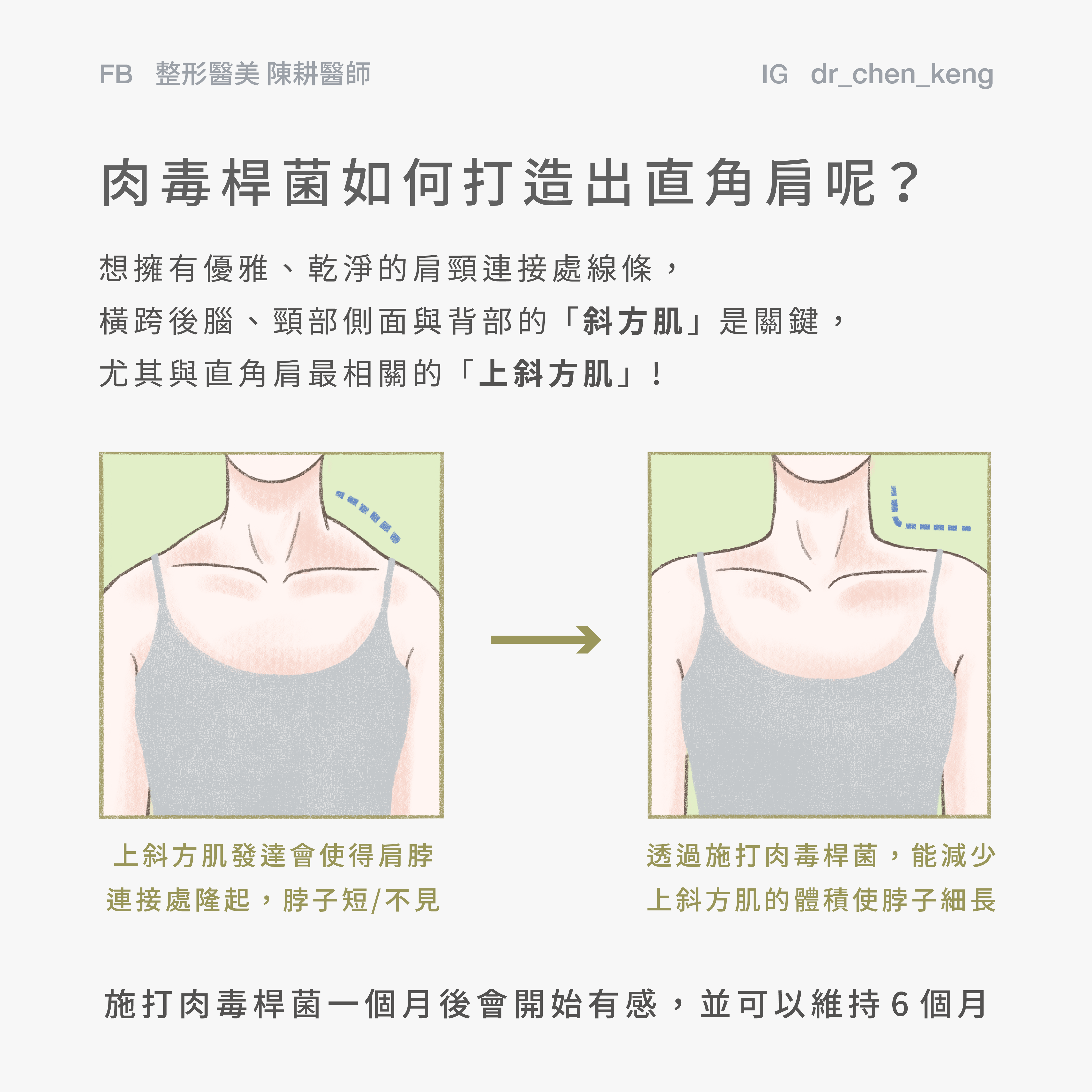 透過肉毒桿菌可以讓上斜方肌的肌肉體積變小,使脖子細長,